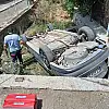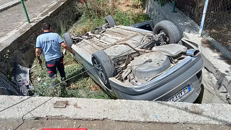 Ağrı'da sürücüsünün direksiyon hakimiyetini kaybettiği araç su giderine düştü.