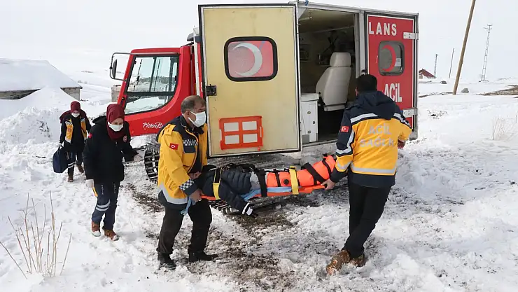 Ağrı'da 112 Acil Sağlık ekipleri, yolu kar yağışı ve tipiden dolayı kapanan Hamur ilçesine bağlı Esenören köyünde rahatsızlanan 7 yaşındaki Murat Koçak için seferber oldu.