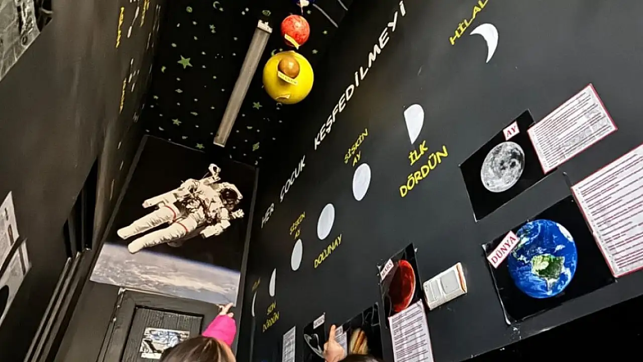 Okul Müdürü Sercan Kocaer, yaptığı açıklamada, öğrencilerin kendilerini farklı bir ortamda hissetmelerini sağlayıp onlara görerek ve yaşayarak öğrenme ortamları oluşturmak hedefiyle okul koridorlarını uzay sokağına dönüştürdüklerini söyledi.
