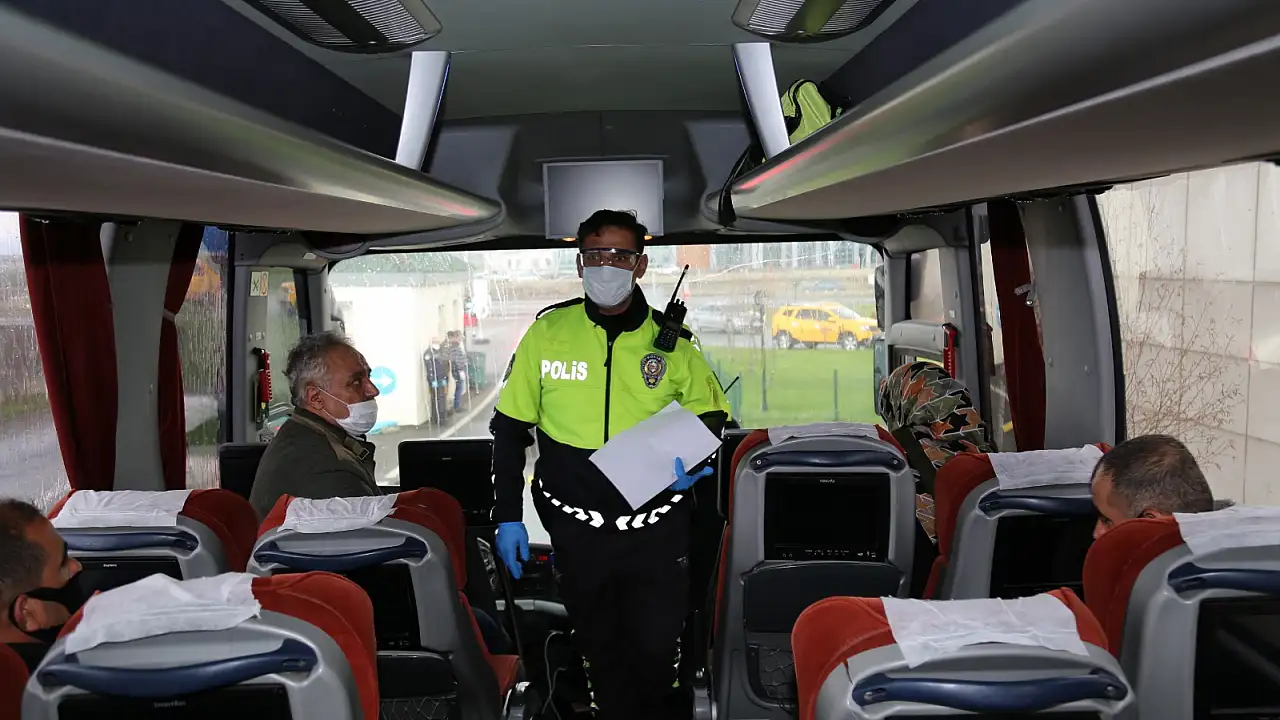 Ağrı'da İl Emniyet Müdürlüğü Bölge Trafik Denetleme Şube Müdürlüğü ekiplerince koronavirüs tedbirleri kapsamında, kente giriş çıkış yapan yolcu otobüsleri ve araçlarda seyahat izin belgesi denetimleri gerçekleştirildi