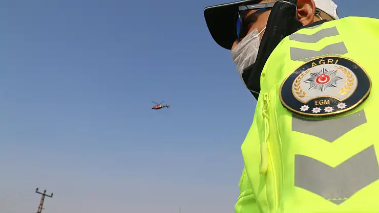 Ağrı'da trafik akışı helikopter ve drone desteğiyle hem havadan hem de karadan denetlendi.