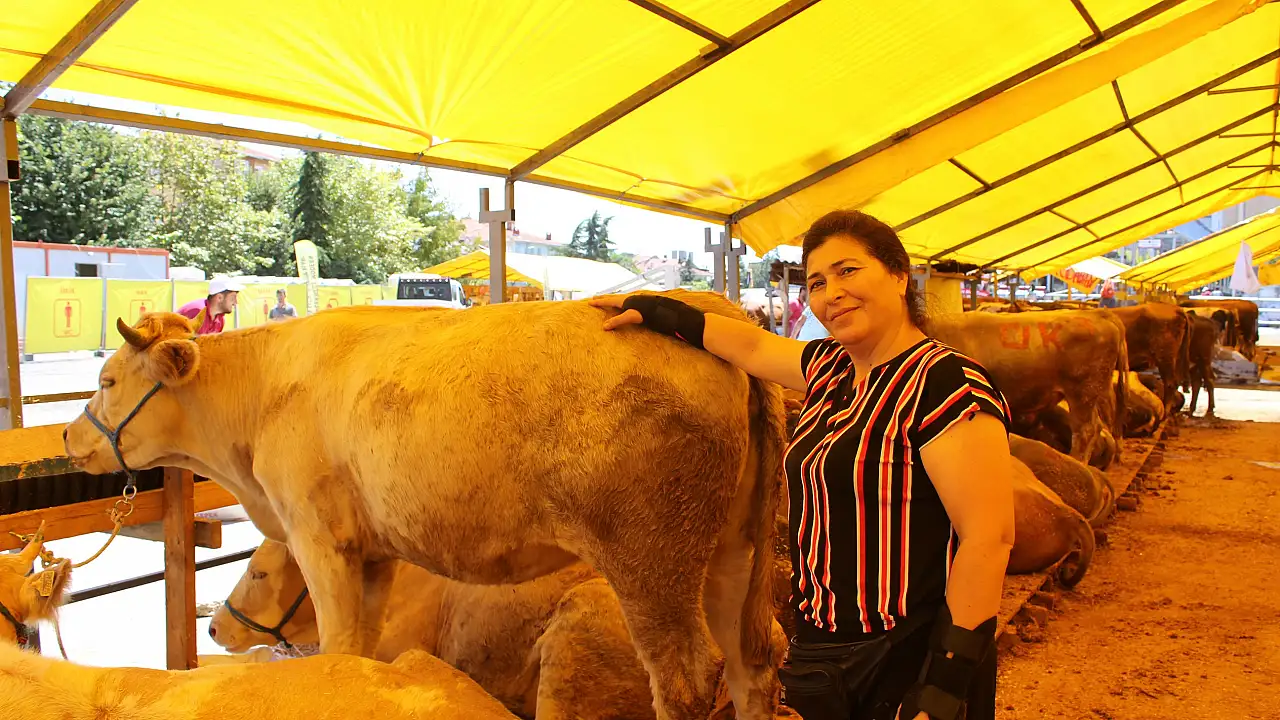 25 yıldır hayvancılıkla uğraşan Ağrılı Hasiye Güler, kurban pazarının ilgi odağı oldu.
