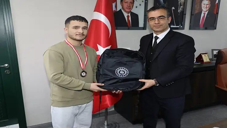 Ağrı Gençlik ve Spor İl Müdürü Fedai Din, 17-23 Aralık 2023 tarihleri arasında Samsun'da düzenlenen Mustafa Bilir Büyük Erkekler Türkiye Ferdi Boks Şampiyonasında 60 kiloda Türkiye üçüncüsü olan Ağrılı boksör Sezgin Acar’ı ve antrenörü Volkan Sarı’yı makamında kabul ederek, tebrik etti.