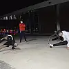 Pandemi nedeni ile spor salonlarının kapanması ile birlikte formlarını korumak isteyen genç boksörler, antrenörleri Volkan Sarı gözetiminde 5’erli gruplar halinde antrenmanlarını daha sağlıklı ortamda yapabilmek içinde genellikle sokağa çıkma kısıtlamalarının başladığı akşam saatlerini bekliyor.
