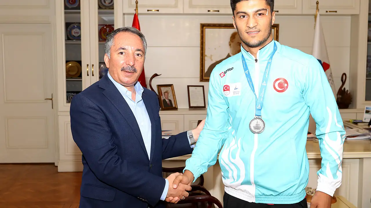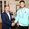 Milli Boksör Bayram Malkan’ı makamında ağırlayan Ağrı İbrahim Çeçen Üniversitesi Rektörü Prof. Dr. Abdulhalik Karabulut, 18. Akdeniz Oyunları’nda göstermiş olduğu büyük başarıdan dolayı milli boksör Bayram Malkan’ı tebrik etti. Sporcularımızın her konuda destekçisi olduklarını dile getiren Prof. Dr. Karabulut, “Milli forma altında ülkemizi ve üniversitemizi temsil eden öğrencilerimiz bizler için gurur kaynağı oluyor. Bayram Malkan’ın boksta daha büyük başarılara imza atacağına inanıyorum. Kendisine boks kariyerinde başarılar diliyorum” dedi.