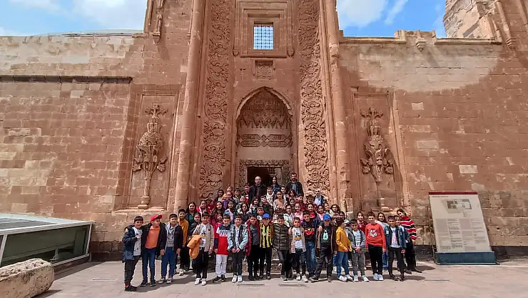 Ağrı'nın Eleşkirt ilçesindeki 100. Yıl İlkokulu öğrencileri, ilk defa yaşadıkları ilçenin dışına çıkarak kartal yuvası görünümüyle dikkat çeken İshak Paşa Sarayı'nı gezerek keyifli dakikalar yaşadı.