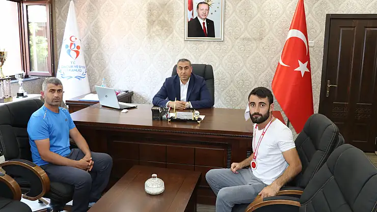 Kick Boks antrenörü Hüseyin Oflaz’ı ve milli sporcu Serhat Akçay’ı makamında kabul eden Ağrı Gençlik Hizmetleri ve Spor İl Müdürü Ömer Faruk Şiran, elde edilen başarıdan dolayı sporcuyu ve antrenörü tebrik ederek, başarılarının devamını diledi.