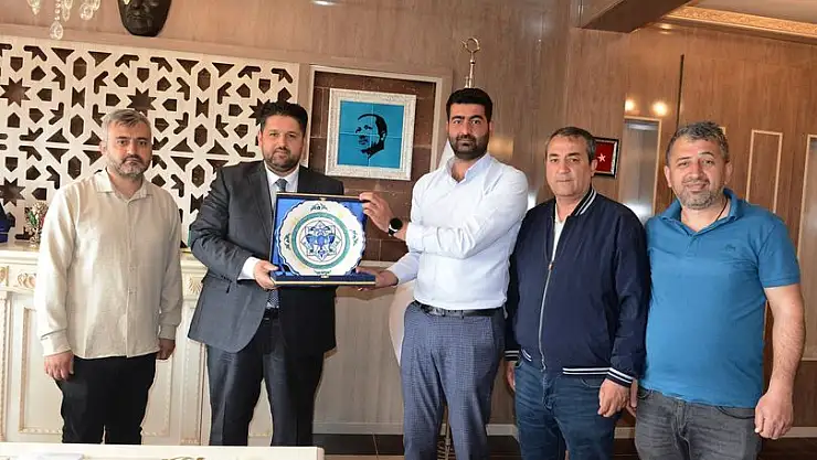 Ahlat Halk Eğitimi Merkezi çalışanları Nihat Gündoğan, Bilal Faruk Barçın, Bünyamin Geyik ve Yusuf Ateş, 29 Nisan 2024 tarihinde Belediye Başkanımız Sayın Yavuz Gülmez'i makamında ziyaret ederek hayırlı olsun dileklerini sundular.