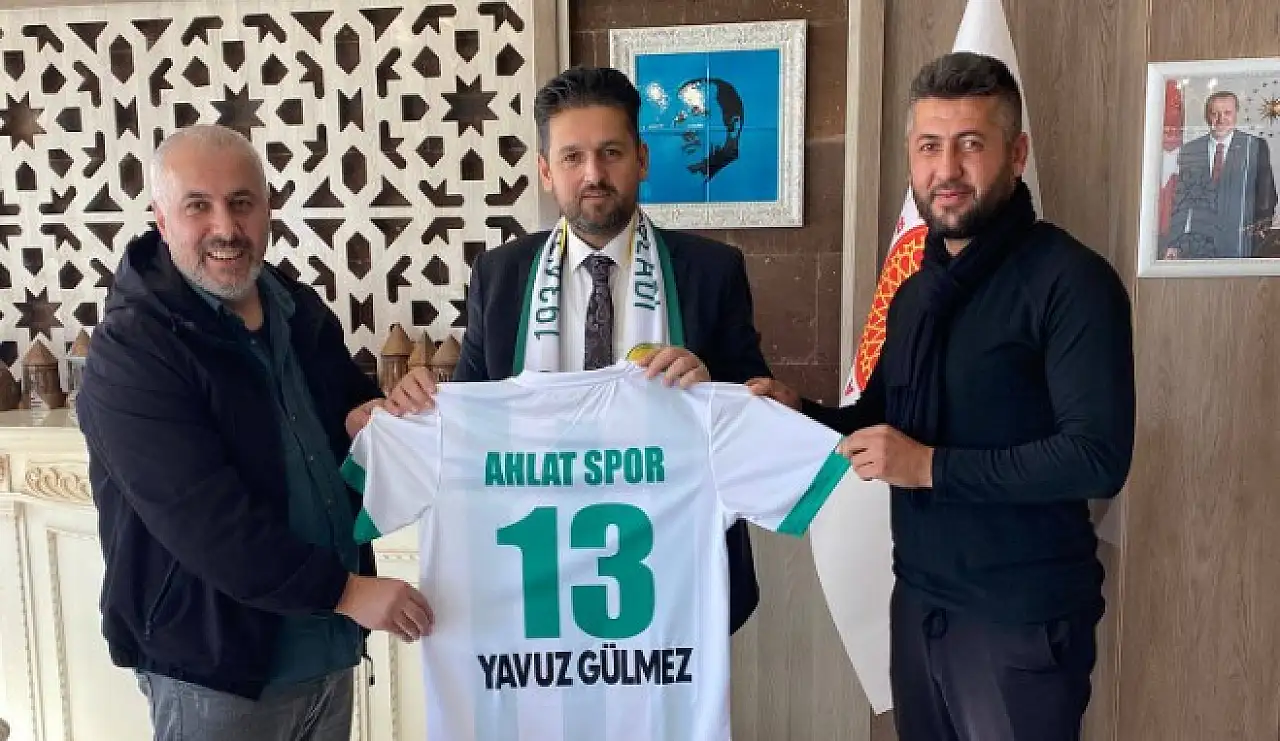 Ahlat Spor Kulübü yöneticileri Onur Balcı ve Halim Adıyaman, Yavuz Gülmez'i makamında ziyaret etti.