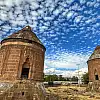Bitlis’in Ahlat ilçesinde gökyüzünde oluşan yoğun bulut kümeleri, tarihi kümbetlerle birleşince ortaya seyri güzel manzaralar çıktı.