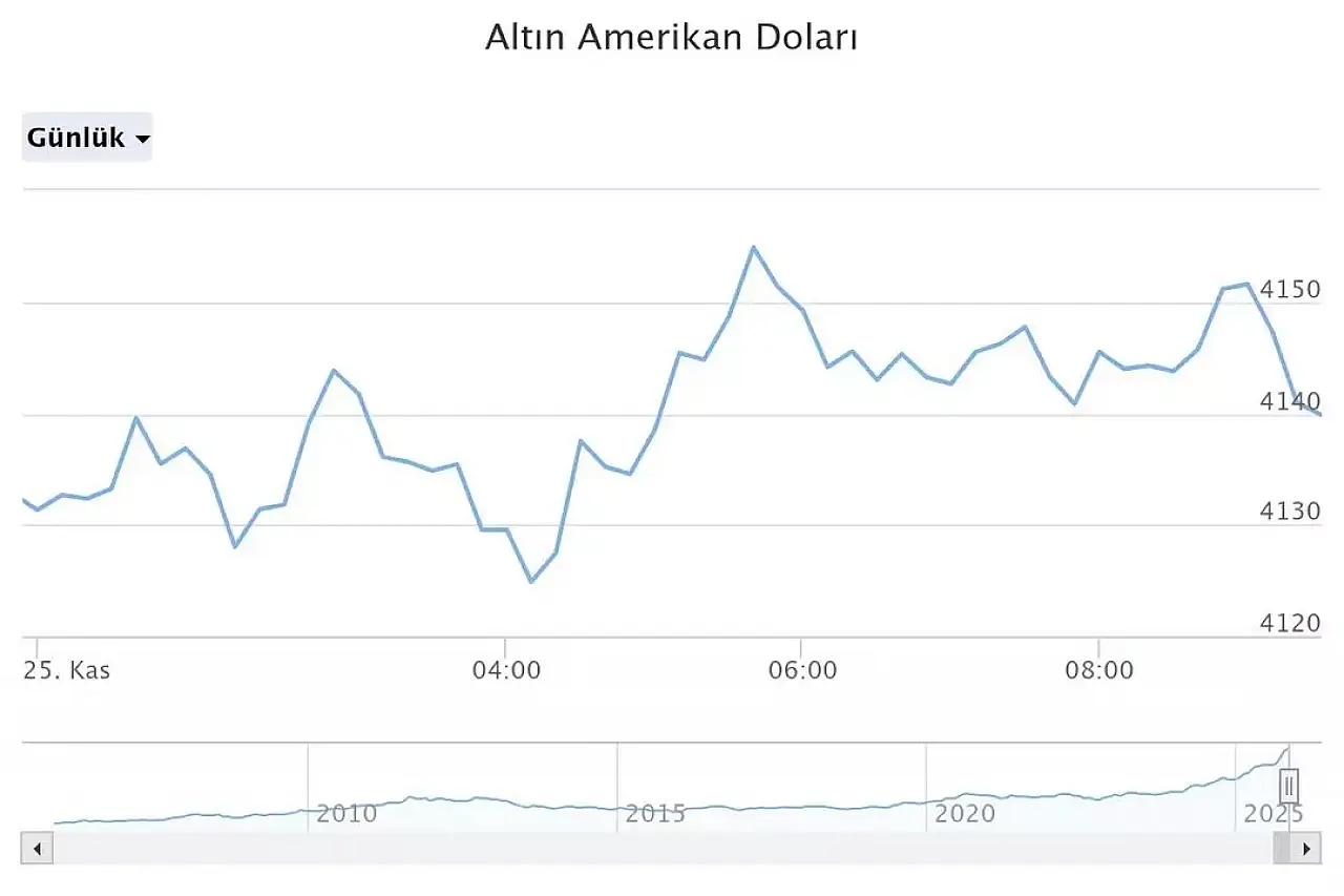 25 Kasım 2025 Salı günü, ABD Merkez Bankası (Fed) yetkililerinden gelen faiz indirimlerine yönelik olumlu beklentiler, küresel piyasalarda altın fiyatlarını yeniden yukarı yönlü hareketlendirdi. Ons altın 4 bin 156 dolara kadar yükselerek son iki haftanın en yüksek seviyesini gördü. Gram altın ise dünden bu yana yaklaşık 171 TL değer kazanarak 5 bin 661 TL bandına yerleşti.