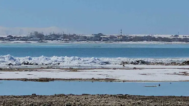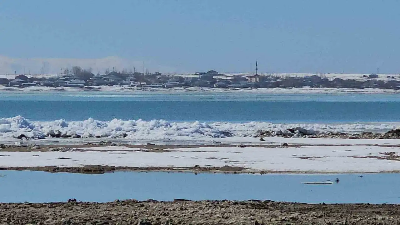 Kış mevsimi boyunca yüzeyi kalın buz tabakasıyla kaplı olan göl, son günlerde etkili olan ılık hava nedeniyle çözülmeye başladı. Çözülmenin ardından kuvvetli rüzgârın da etkisiyle parçalanan buz kütleleri hareket ederek dalgalarla birlikte kıyıya taşındı.