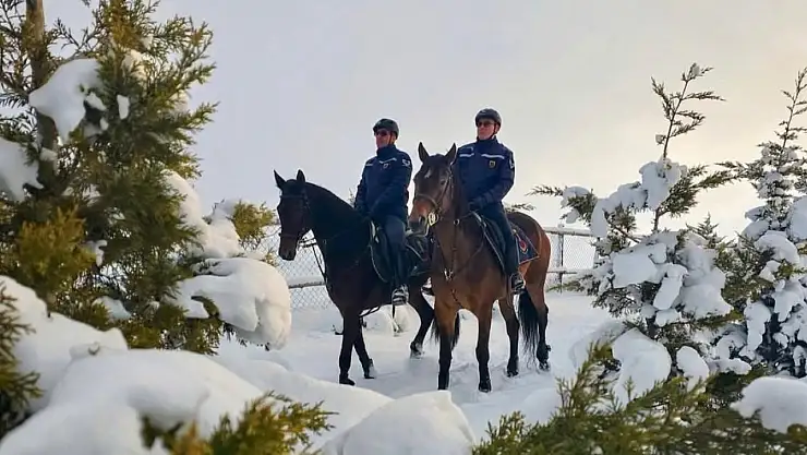 Karla kaplanan kırsal alanlar, parklar ve mesire yerlerinde gerçekleştirilen devriyelerde, atlı jandarmaların hem çevreye hâkimiyeti hem de hareket kabiliyeti dikkat çekiyor. Doğayla iç içe yürütülen görevlerde ekiplerin disiplinli duruşu, koordinasyonu ve çevreyi sürekli gözlem altında tutması, devriye faaliyetlerinin etkinliğini artırıyor.