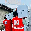 Taşlıçay'da Kızılay gönüllüleri, bağışçıların gönderdiği gıda kolilerini ihtiyaç sahiplerine ulaştırıyor.