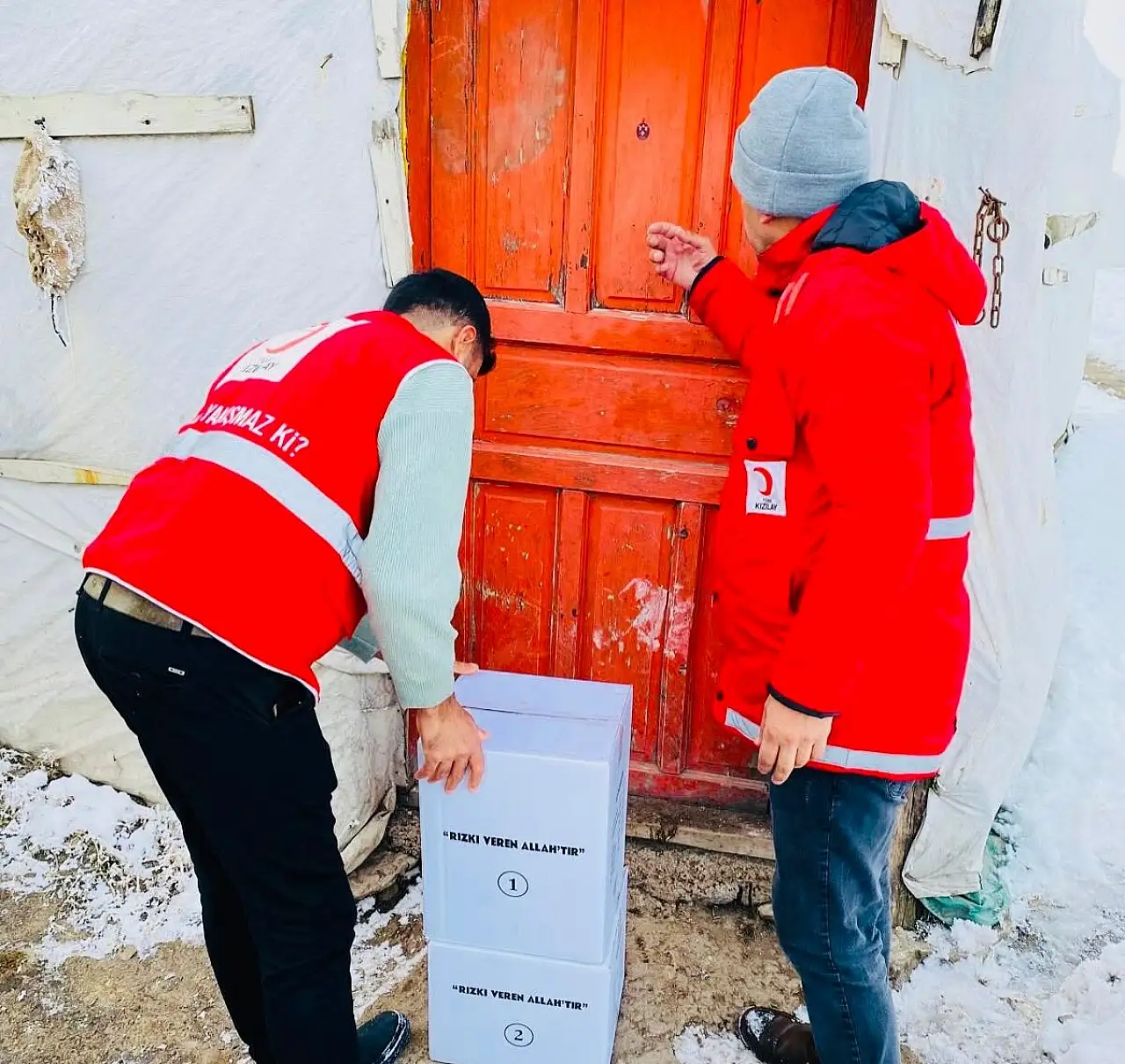 Ağrı’nın Taşlıçay ilçesinde Türk Kızılayı gönüllüleri, bağışçılar tarafından ulaştırılan gıda kolilerini ihtiyaç sahibi ailelere teslim etmeyi sürdürüyor. İlçenin çeşitli mahallelerinde ve kırsal bölgelerinde yürütülen dağıtım faaliyetleri, olumsuz hava şartlarına rağmen gönüllü ekipler tarafından düzenli şekilde gerçekleştiriliyor.