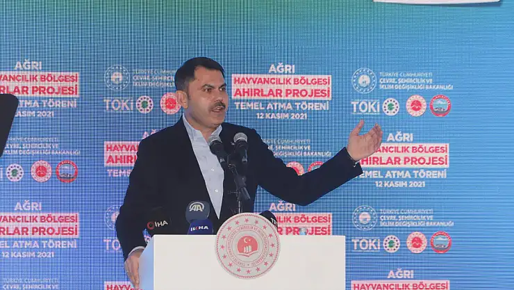 Yapacakları yatırımlarla Ağrı’dan dışarıya olan göçünde önüne geçeceklerini vurgu yapan Bakan Kurum:"Bu yatırımla birlikte Ağrımıza Kürt kardeşlerimize o Kürt çocuklarımıza gelecek sağlayacak, istihdam sağlayacak çok önemli bir yatırımı hayata geçiriyoruz. Biz hiçbir zaman laf üretmedik. Hiçbir zaman entrikaların içinde yer almadık ve 19 yıldır olduğu gibi Sayın Cumhurbaşkanımızın liderliğinde, onun ortaya koyduğu vizyon çerçevesinde hep milletle beraber olduk. Bu günde bura da bu projenin temellerini atıyoruz. Tabi sadece burada binalardan ibaret proje gerçekleştirmiyoruz. Proje kapsamında 314 ahır, 3 tane veterinerlik binasından oluşan toplam yatırım değeri 650 milyon lira olan bir projenin temelini atmış oluyoruz. Çok önemli bir kırsal dönüşüm projesi. Tabi Ağrımızın ekonomisini canlandıracak bu anlamda üretim ve istihdama katkı sağlayacak hayvancılık bölgemiz. Çocuklarımız inanın Ağrı’yı terk etmeyecek. Çocuklarımız Ağrı’da kalacak. Hastanemiz, üniversitemiz, fabrikamız da var. Her şeyimizde olacak. O yüzden çocuklarımız Ağrı’yı terk etmeyecekler. Ağrı’da her türlü imkanı yerine getirmiş olacağız. Ağrımızı Türkiye’nin en büyük hayvancılık üstü haline getirmek için çalışacağız ve Ağrı’da hayvancılığı en üste taşıyacak Ağrı AŞ. Et Entegre Tesisimizi kuruyoruz. Bu yatırımında 150 milyon yatırım bedeli ile kuracağımız bu tesisin inşasında da il özel idaresi, belediye ve TOKİ ve İller Bankası görev alacak.” Dedi.