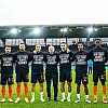 Turuncu-lacivertli takımın futbolcuları, karşılaşma öncesinde sahaya ısınmak için “İnsanlığa karşı işlenen suçlara son verin” yazılı tişörtlerle çıktı. Aynı mesajı taşıyan tişörtü kulüp başkanı Göksel Gümüşdağ da giydi.