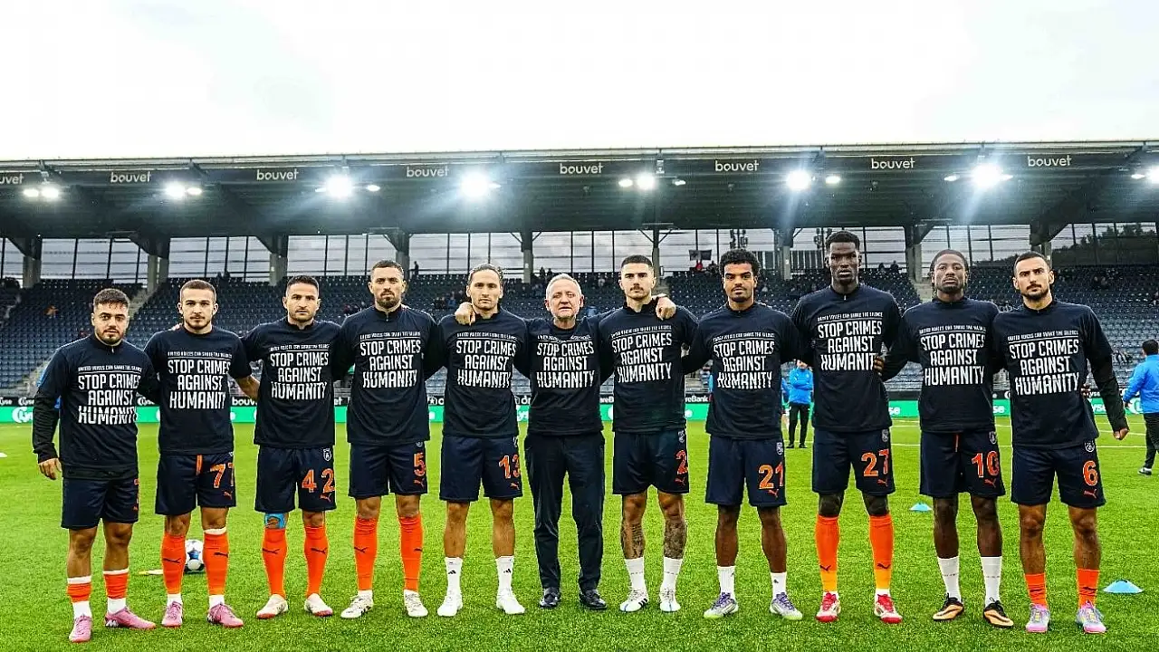 “Gazze’de yaşanan insanlık suçlarına Norveç’ten haykırıyoruz. Başkanımız Göksel Gümüşdağ ve futbolcularımız, Viking FK ile oynayacağımız maça ‘İnsanlığa karşı işlenen suçlara son verin’ yazılı tişörtlerle çıktı.”