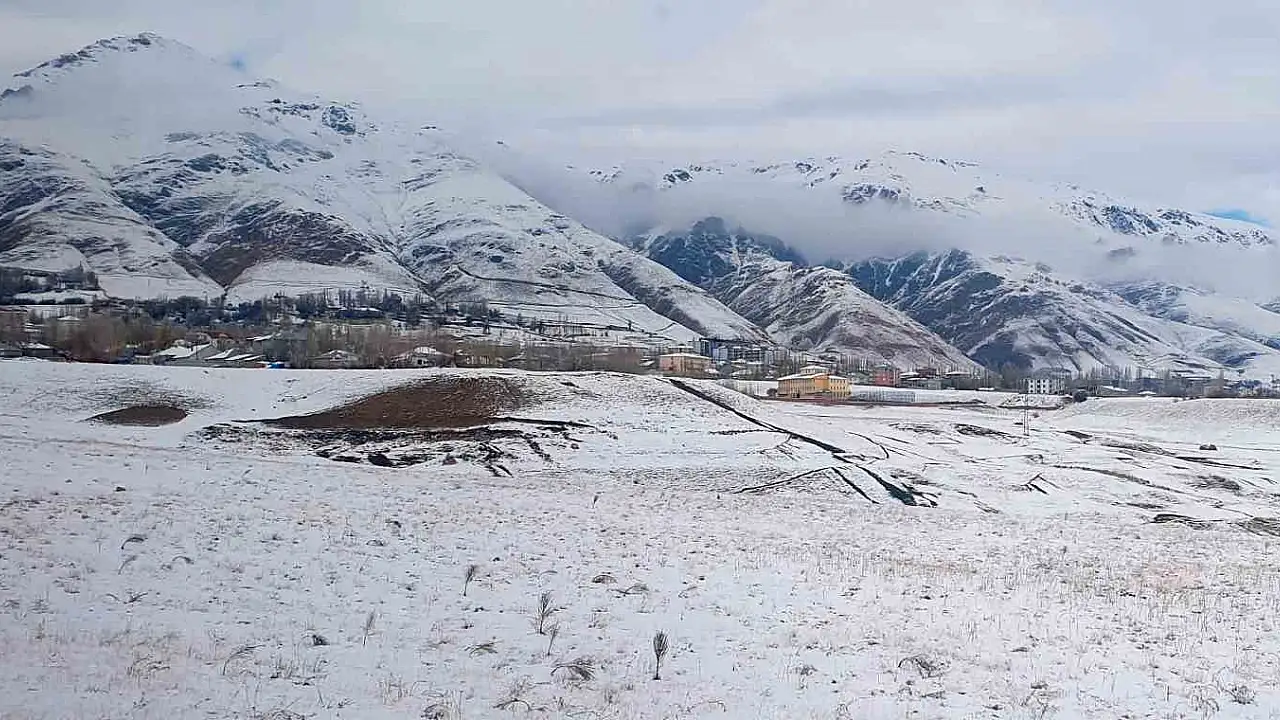 Van’ın Başkale ilçesi, etkili olan kar yağışı nedeniyle beyaza büründü.