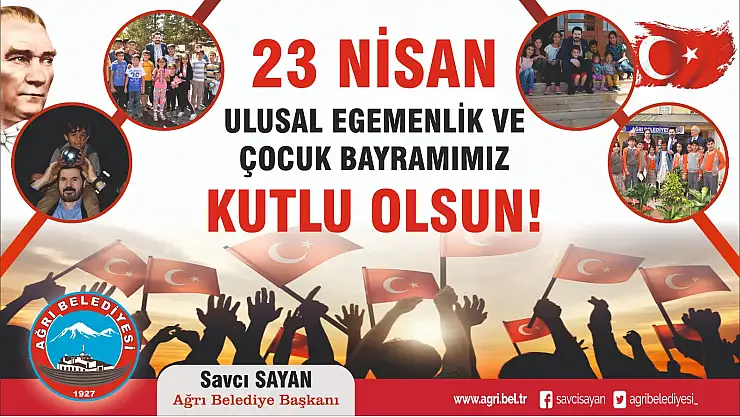 Ağrı Belediye Başkanı Savcı Sayan Türkiye Büyük Millet Meclisi´ninkuruluşunun 100. yıl dönümü, 23 Nisan Ulusal Egemenlik ve Çocuk Bayramı dolayısıyla bir mesaj yayımladı.