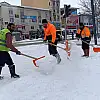 Belediye ekipleri, yaya güvenliği için cadde ve sokaklarda kar temizliği yapıyor.