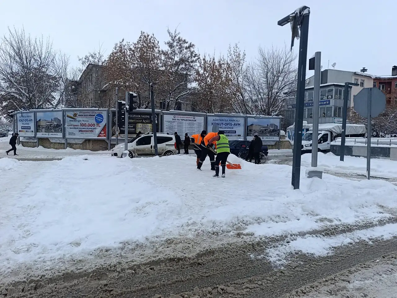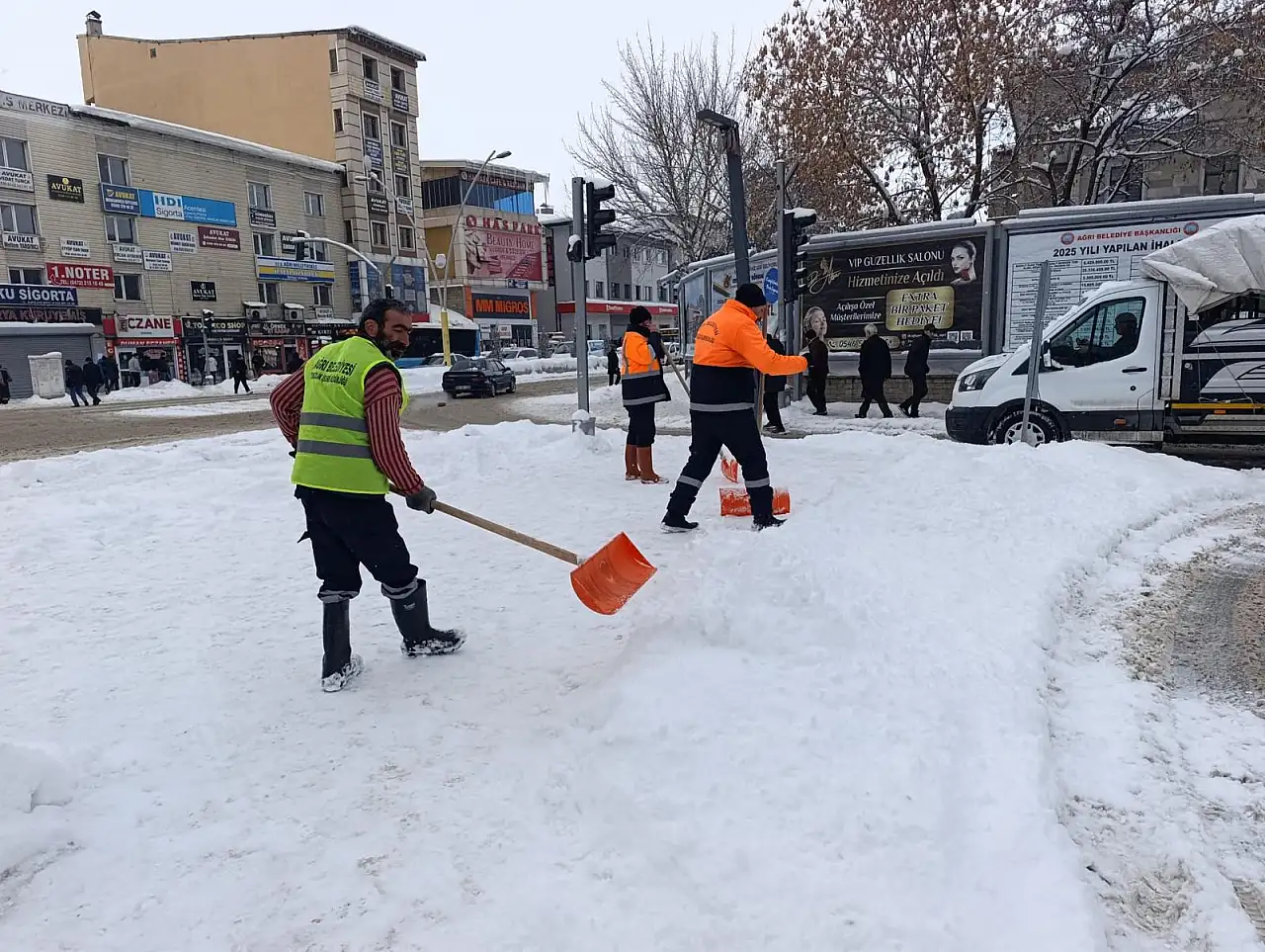 Ağrı Belediyesi yetkilileri, çalışmaların kar yağışının etkisine göre devam edeceğini belirterek, vatandaşlardan da buzlanmaya karşı dikkatli olmalarını istedi:
