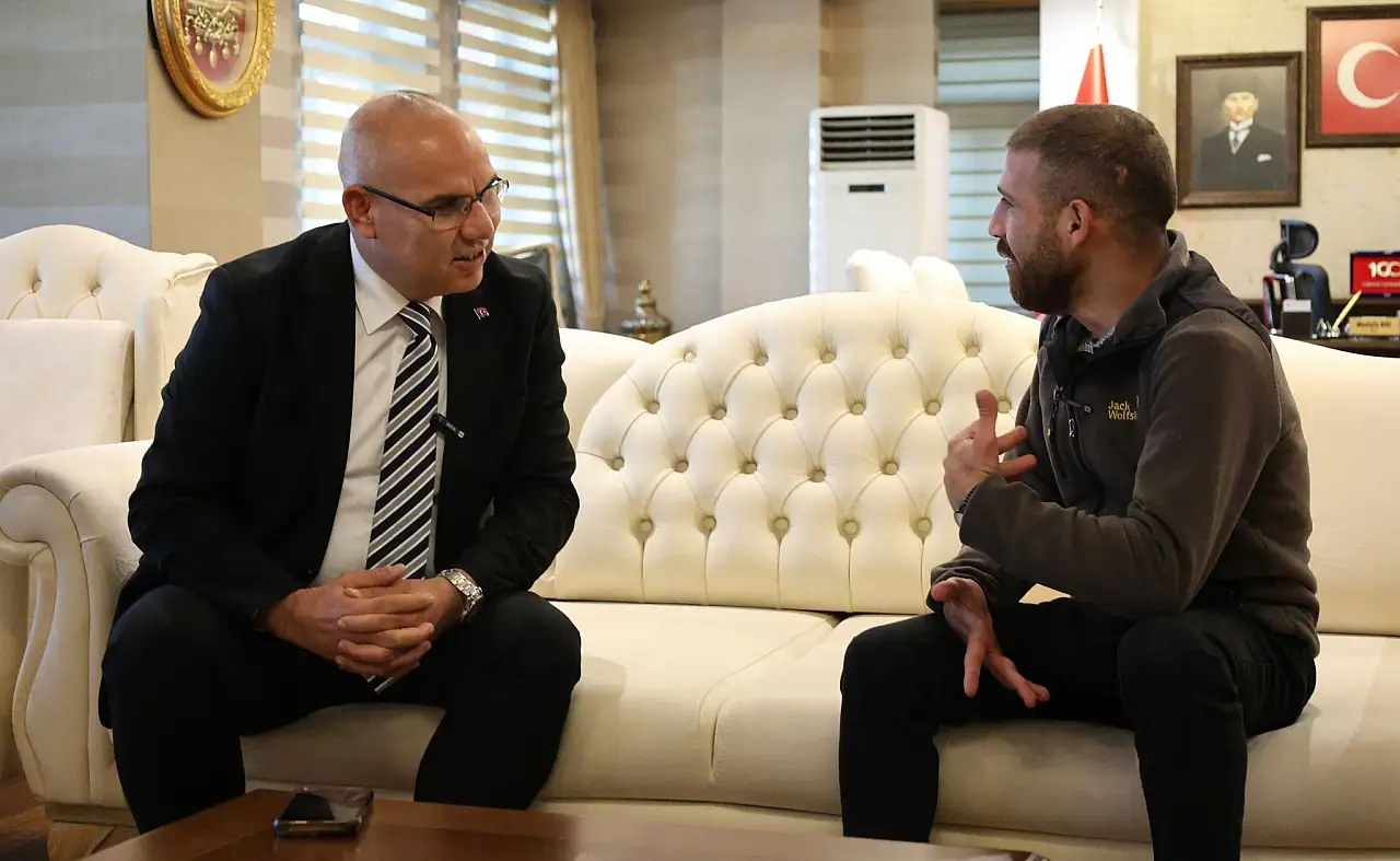 Ağrı Valisi Mustafa Koç, özel birey Mehmet Emin Sontur'u valilikte misafir etti. Ziyarette Âşık Veysel'in türküsüyle duygusal anlar yaşandı.