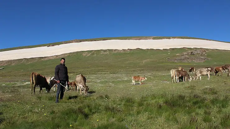 Havaların ısınmasıyla birlikte yüksek rakımlı yaylalara göç eden Iğdırlı besiciler, buralarda 3 farklı mevsime aynı anda şahitlik ediyor.