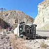 Erzurum-Artvin karayolunda virajı alamayıp devrilen beton mikseri Tortum Çayı’na uçmaktan son anda kurtuldu.
