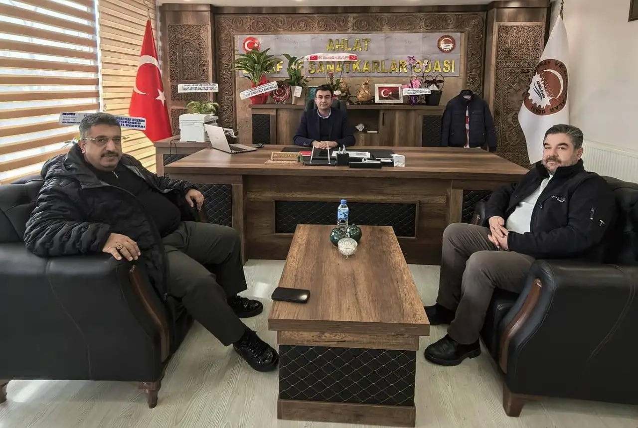 Ziyaret kapsamında esnaf ve sanatkârların birlik ve beraberliğinin önemine vurgu yapılırken, yeni dönemin Ahlat ve bölge esnafı adına hayırlı olması temennisinde bulunuldu. Tatvan Ticaret ve Sanayi Odası Başkanı Bilal Adabağ, Mesut Şeker ve Cemil Gülsar’ı tebrik ederek, yeni görev dönemlerinde başarılar diledi.