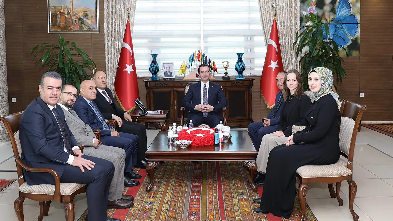 24 Kasım Öğretmenler Günü dolayısıyla İl Millî Eğitim Müdürü Vedat Kaya ve beraberindeki heyet, Vali Ahmet Karakaya'yı ziyaret etti.