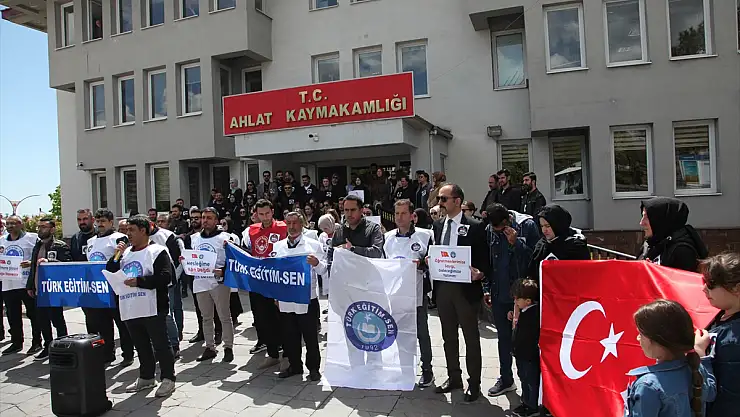 Ahlat Kaymakamlığı önünde toplanan öğretmen ve idareciler adına açıklama yapan Türk Eğitim-Sen Bitlis Şube Başkanı Ünal Gürbüz, eğitim camiasında yaşanan şiddet olaylarını kınadıklarını söyledi.