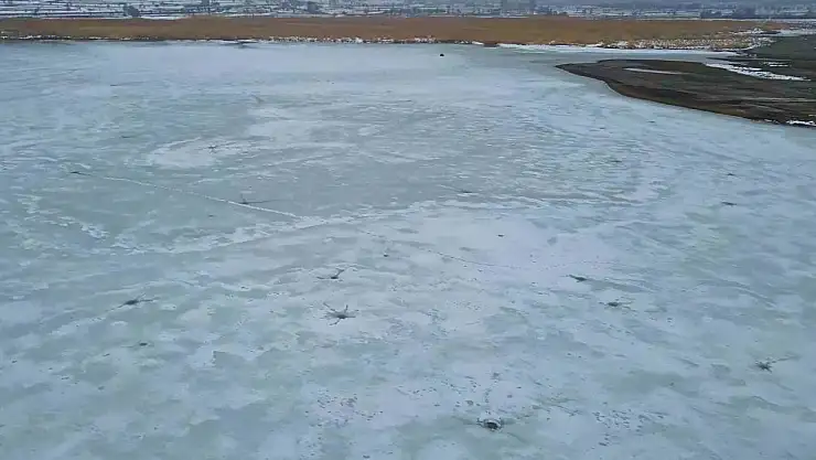 Bitlis'te etkisini artıran dondurucu soğuklar sazlık alanları buzla kaplarken, ördekler ve çok sayıda su kuşu türü donmayan açık sulara yönelerek Van Gölü'nde yoğunlaştı.