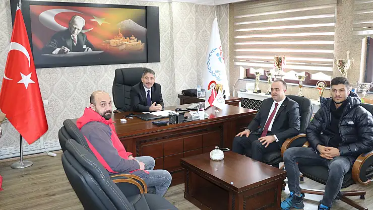 Alınan başarıdan dolayı Demir’i makamında ziyaret eden Milli sporcu Bayram Malkan ve antrenörü Volkan Sarı, şampiyonadaki başarılarını İl Müdür V.Demir ile paylaştılar.