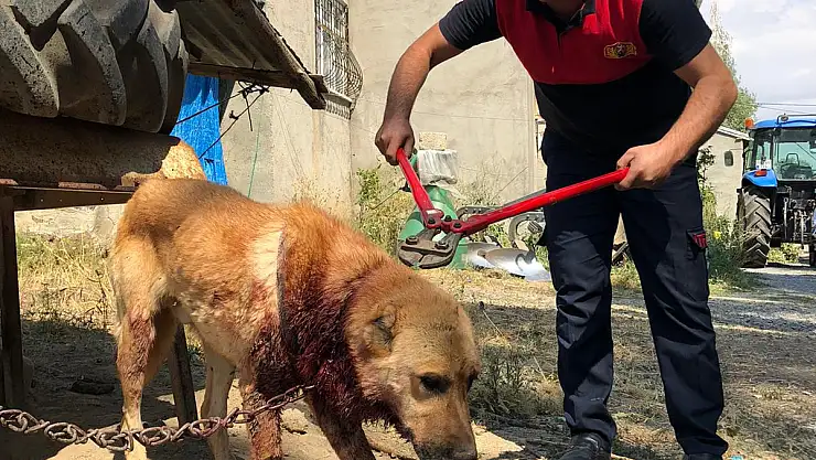 Ağrı'nın merkeze bağlı Yukarı Küpkıran köyünde boynu zincire sıkışan köpek itfaiye ekipleri tarafından kurtarıldı.