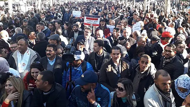 Tunuslu lise öğretmenleri, Tunus Eğitim Bakanlığı önünde bir protesto gösterisi düzenledi. Başkent Tunus'ta toplanan öğretmenler, Habib Burgiba Caddesi'nde yürüyüş düzenledi. Öğretmenler, maaş artışı talebini tekrar dile getirdi. Emeklilik yaşının düşürülmesini isteyen protestocular, 32 yıl çalışma şartının azaltılmasını talep etti.
