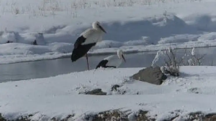 Kars'a her yıl sıcak illerden gelen leyleklerden ikisi, havalarının soğumasına rağmen göç etmedi. Havaların soğuk ve karlı olmasına rağmen göç etmeyen leylekler, geceleri ise yakın köylere giderek ahırlarda geçiriyor.