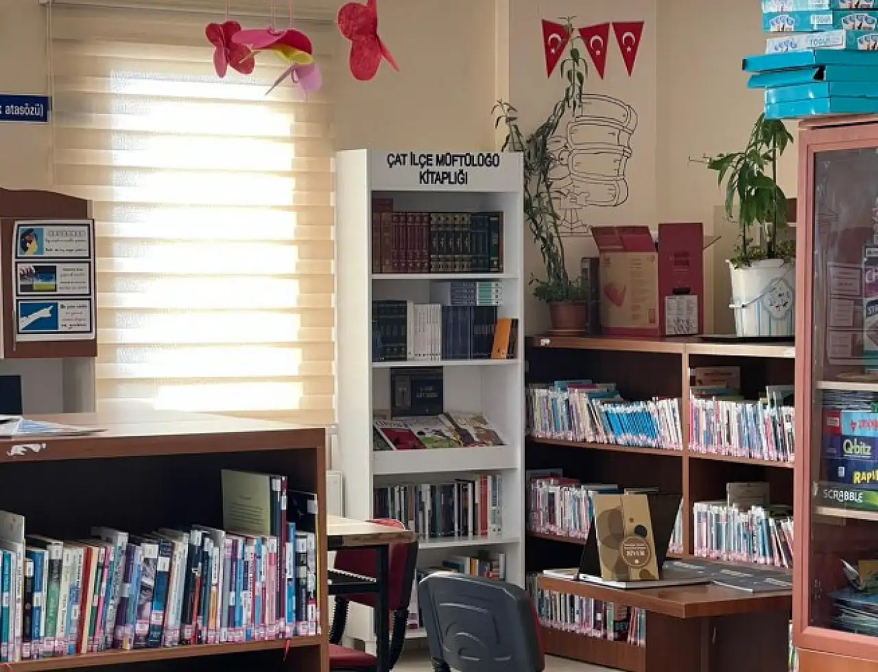 Çat İlçe Müftülüğü, gençlerin bilgi birikimini artırmak ve manevi gelişimlerine katkı sunmak amacıyla yürüttüğü “Gençliğe Değer” projesi kapsamında İlçe Halk Kütüphanesi’ne yeni bir kitaplık bağışladı. Bağışla birlikte kütüphane rafları zengin bir eser koleksiyonuyla buluşturuldu.