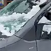 Çatıdan düşen kar araca hasar verdi