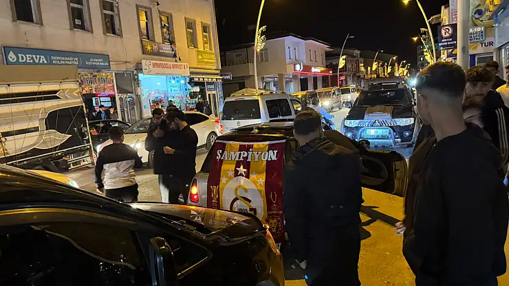 Eleşkirt'te kutlamalar sokaklara taştı gençler Galatasaray bayraklarıyla yürüyüş yaptı.