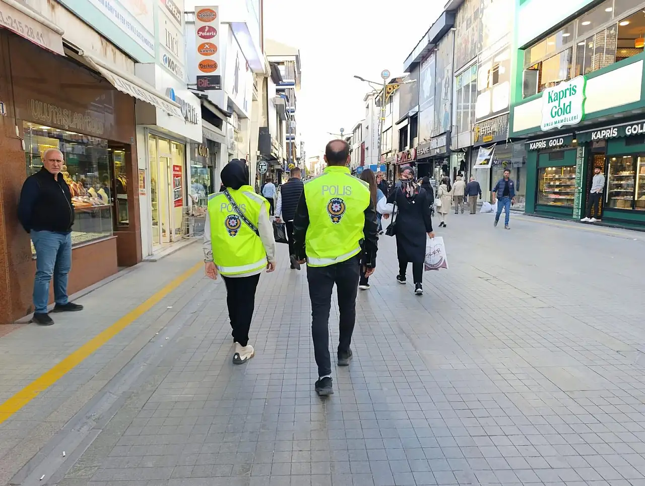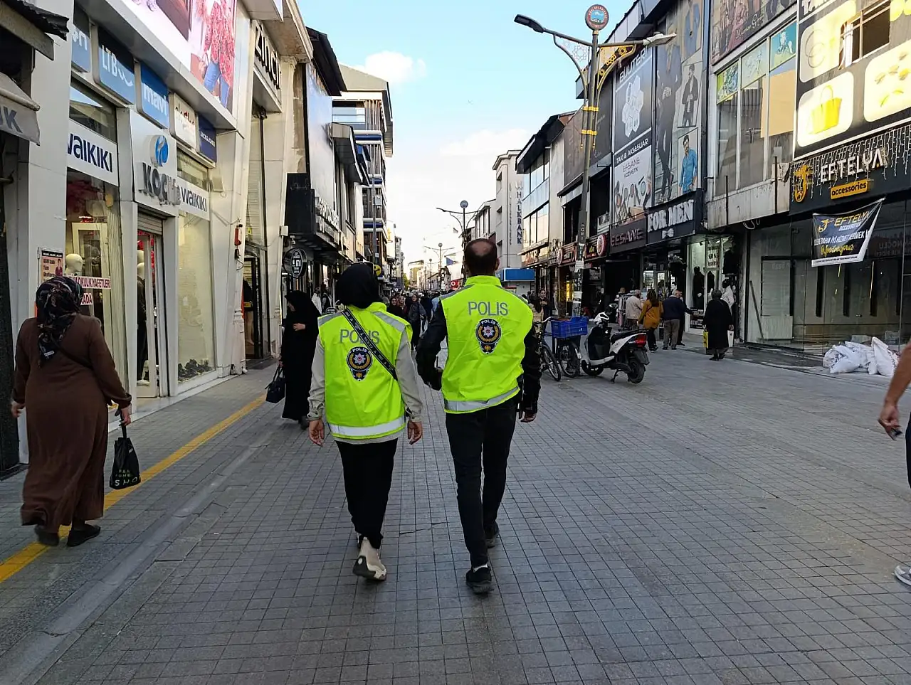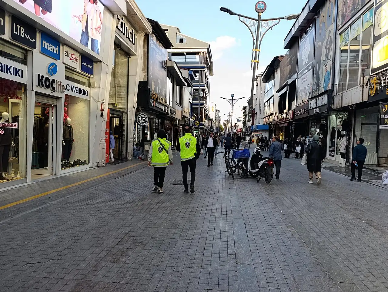Ağrı'da Cumhuriyet Caddesi'nde polis ekipleri her gün yürüyerek güvenliği sağlıyor.