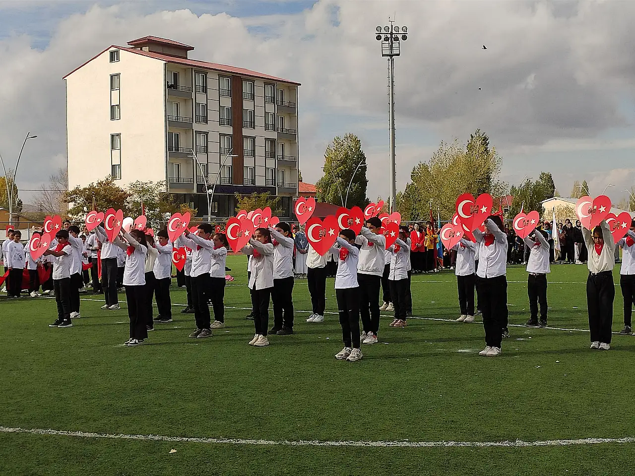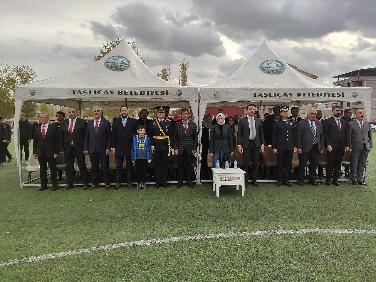 Ağrı'nın Taşlıçay ilçesinde, Cumhuriyetimizin 102. yılı dolayısıyla düzenlenen kutlama programına yoğun bir katılım oldu. Program, Taşlıçay Kaymakamı Kübra Baka Kılıç'ın katılımıyla ilçe protokolü, öğretmenler, öğrenciler ve vatandaşların bir araya gelmesiyle gerçekleşti.