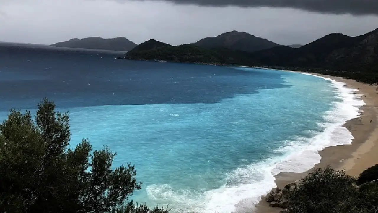 İlçede iki gündür etkili olan yağışlar öğle saatlerinde ara verdi. Yağışın durmasının ardından Dünyaca ünlü Ölüdeniz ve Kelebekler Vadisi'nde rüzgar etkili oldu.Rüzgar şiddetini artırınca denizin büyük bölümünün rengi turkuaza döndü. Eşsiz manzarayı gören bazı ilçe sakinleri turkuaza rengini izlerken o anları kayıt altına aldı.Fethiye Meteoroloji İstasyon Müdürlüğü yetkilileri, yağışların cumartesi gününe kadar aralıklara devam edeceğini bildirdi.