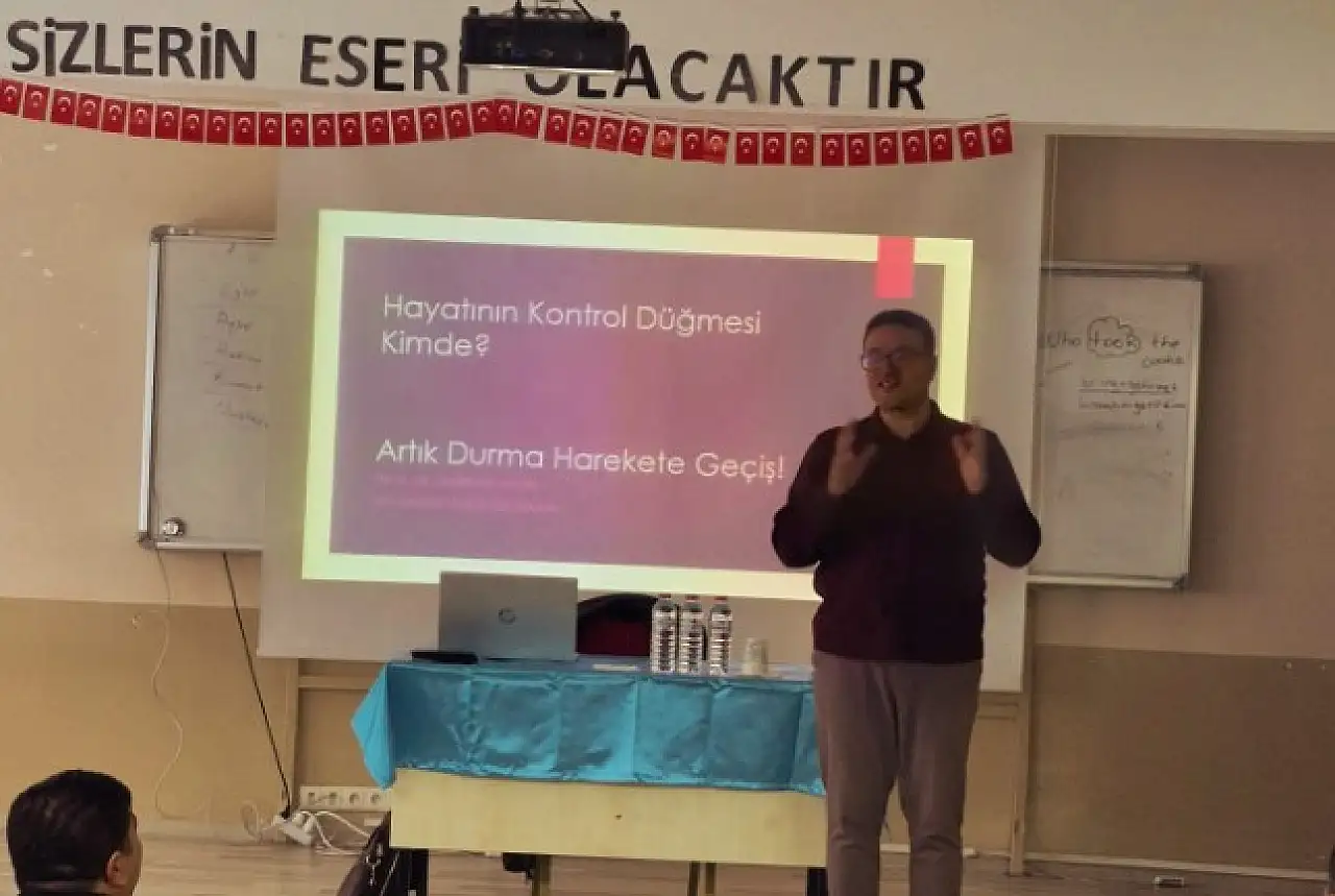 Bitlis Eren Üniversitesi İlahiyat Fakültesi Dekanı Prof. Dr. Tahirhan Aydın, Tatvan Şehit Mehmet Kılıç Anadolu İmam Hatip Lisesi öğrencileriyle bir araya gelerek “Hayatının Kontrol Düğmesi Kimde? Artık Durma, Harekete Geç!” başlıklı bir söyleşi gerçekleştirdi.