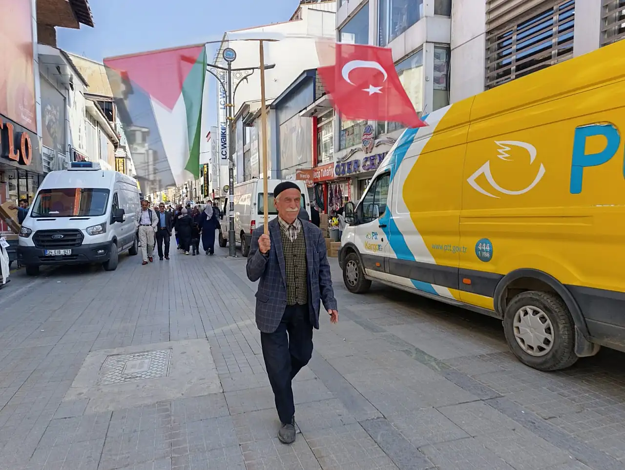 Ağrı'da yaşlı bir vatandaş, tek başına Filistin için yürüdü. Karaköse Haber kameraları yürüyüşü anbean görüntüledi.