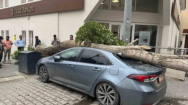 Ağrı'nın Diyadin ilçesinde etkili olan rüzgar, kökünden söktüğü ağacı park halindeki otomobilin üzerine devirdi.
