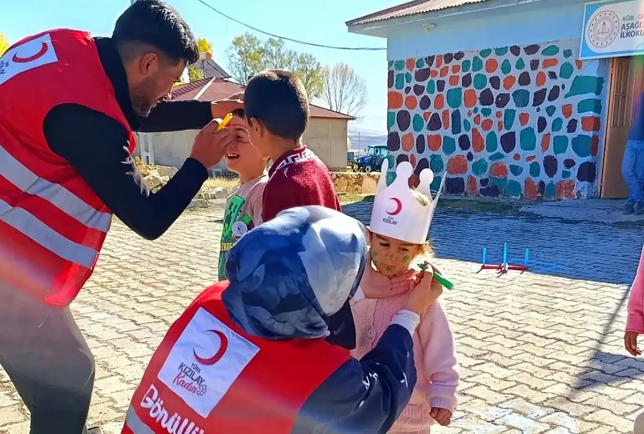 Kızılay Haftası kapsamında Diyadin'de köy okulları ziyaret edildi. Gönüllüler, çocuklara Kızılay'ın faaliyetlerini anlattı, oyunlar oynadı ve meyve ikramında bulundu.