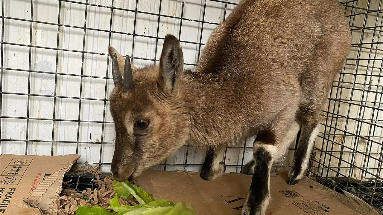 Doğada bitkin bulunan yavru yaban keçisi gözetim altında
