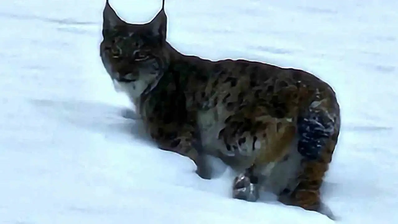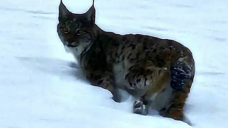 Bitlis'in Hizan ilçesi kırsalında nesli tükenme tehlikesi altında bulunan vaşak kısa süreliğine görüntülendi.