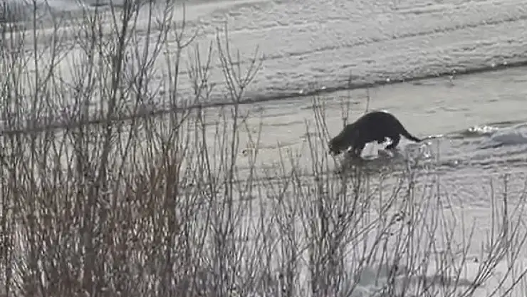 Nesli tehdit altındaki su samurları, Ağrı'nın Taşlıçay ilçesinde suyun içinde avlanırken görüntülendi.